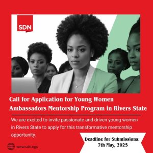 Stakeholders Democracy Network (SDN) is inviting passionate and driven young women in Rivers State to apply for its Young Women Ambassadors Mentorship Program. This transformative initiative is aimed at empowering the next generation of female leaders by providing them with the mentorship, skills, and resources needed to make a lasting impact in their communities.