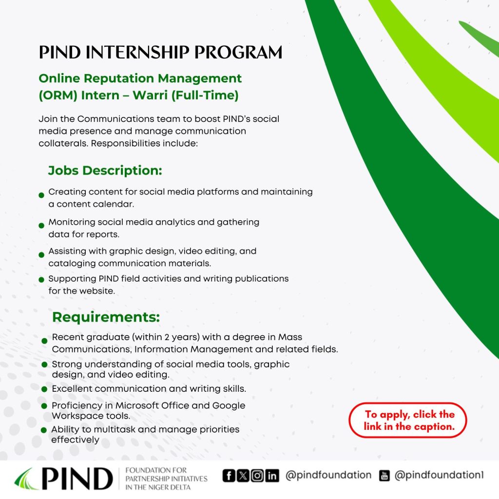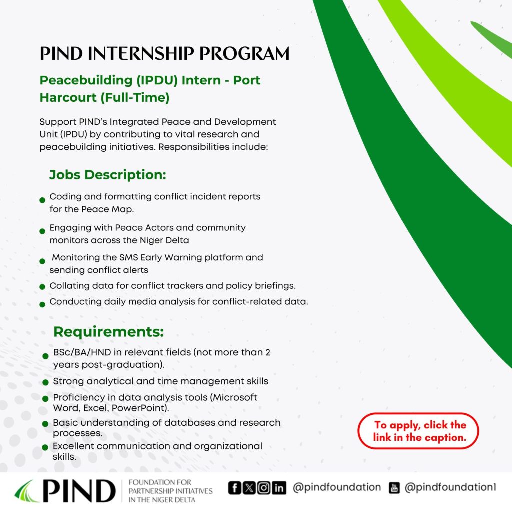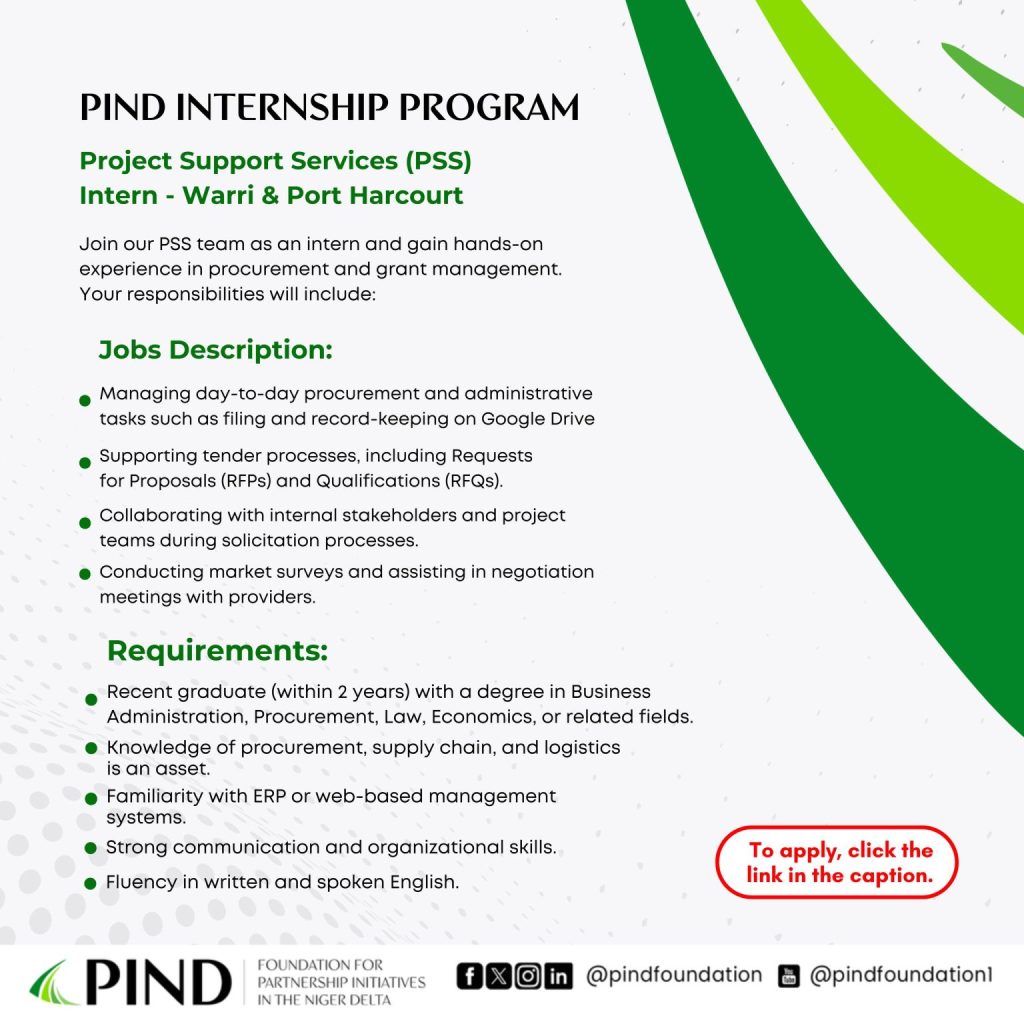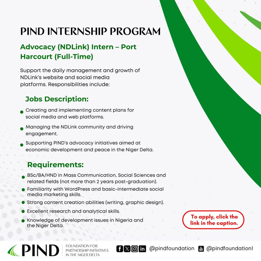 Are you a young professional looking to kick-start your career in development? The Foundation for Partnership Initiatives in the Niger Delta (PIND) is offering exciting one-year, full-time internship opportunities for passionate individuals eager to gain hands-on experience in a dynamic and impactful organization.