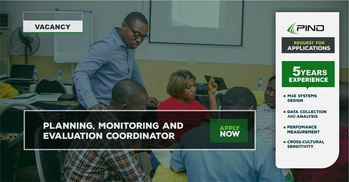 PIND Foundation is seeking for a qualified Planning, Monitoring and Evaluation Coordinator. The Planning Monitoring & Evaluation Coordinator will provide performance information of the various interventions / projects of the foundation. S/he will also contribute to the development and refinement of the impact assessment methodology on an on-going basis. The position holder will be required to develop the monitoring and evaluation plan in which each indicator will be clearly defined with description of data collection and analysis methods, timing and responsibilities.
